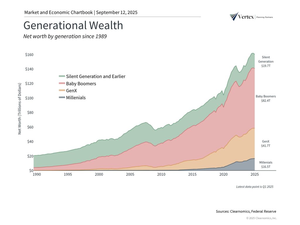 The size and structure of wealth transfers have evolved over the past few decades. Unlike previous generations who relied primarily on pensions and Social Security, today’s retirees have accumulated substantial assets in retirement accounts and investment portfolios. Baby Boomers, those between 61 and 79 years old in 2025, now hold over $82 trillion in wealth according to the Federal Reserve.