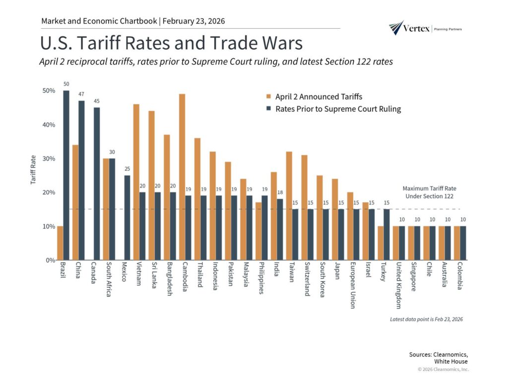 After nearly a year of trade policy uncertainty, the Supreme Court’s ruling that recent tariffs are unconstitutional has reset the policy landscape. Yet, as is often the case in Washington, when one chapter closes, another opens. President Trump has already signaled a switch to an alternative legal framework for tariffs, and markets are still digesting what this means for trade policy, corporate earnings, consumer spending, and investment portfolios.